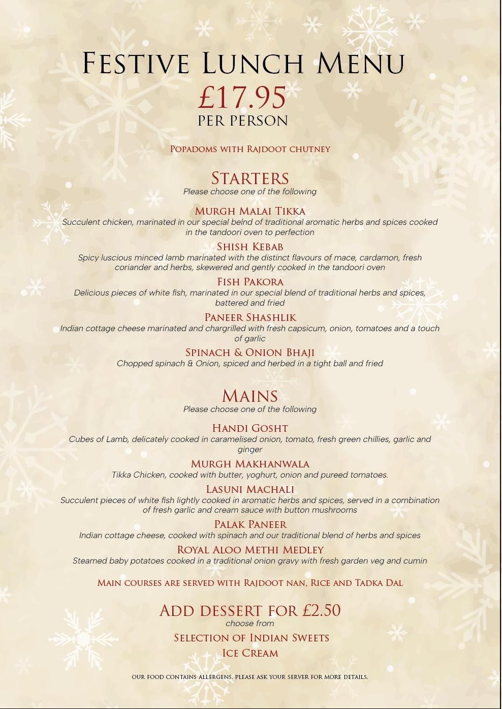 60 years. Try our Deluxe 2 course lunch menu for just £15.95